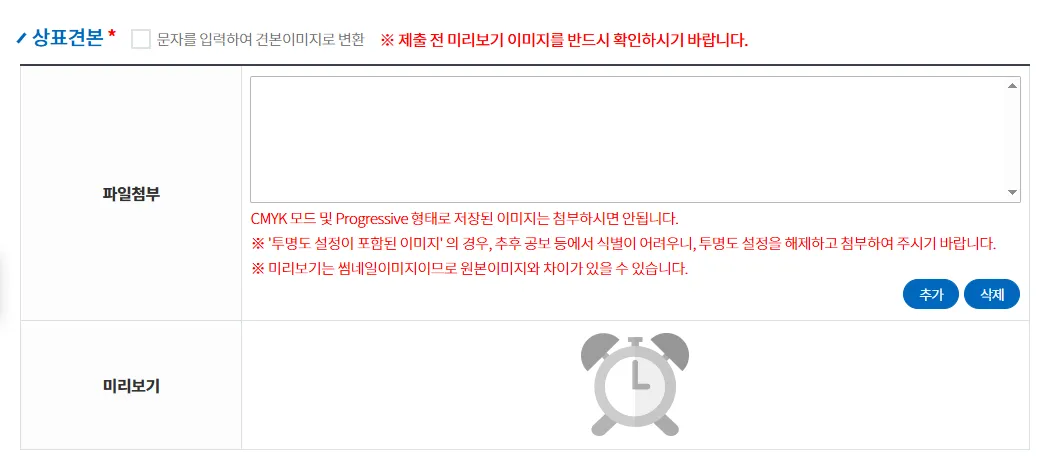 상표 견본을 준비했을 경우 아래 화면에서 준비한 파일을 첨부합니다.